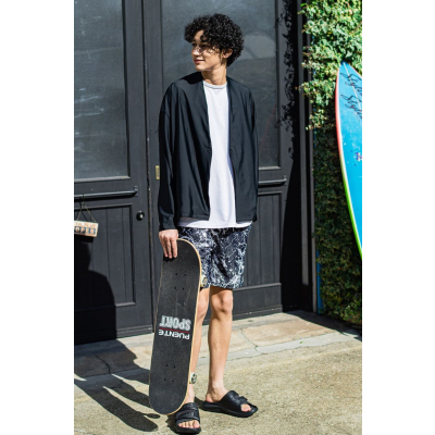 オーバーサイズ ラッシュガードポロ (PAINTBLACK) ポリエステル / ペイントプリント / ストレッチ / ウォッシャブル / RC32-HP-002